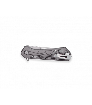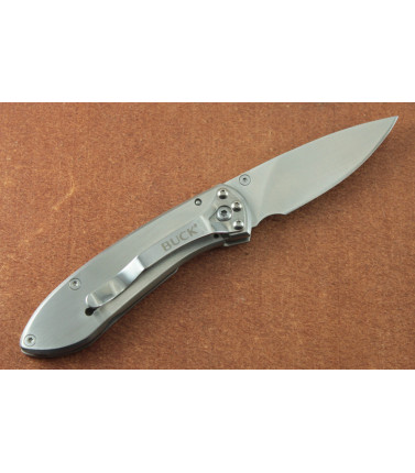 $39.97The Buck Trace Folder (Large) features a 3 1/4" stonewash finish 7Cr17MoV stainless blade. Flipper opening. Linerlock. Gray skeletonized aluminum handle. Deep carry pocket clip. 4 5/8" closed.
