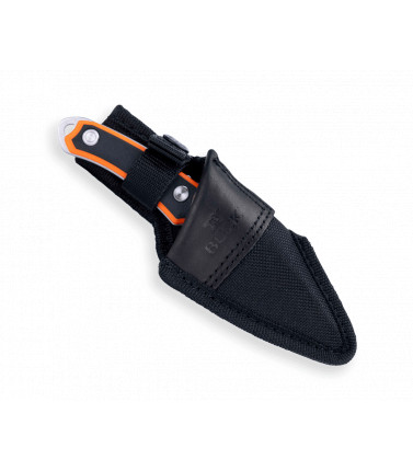$64.99The Buck Alpha Scout Select features a 420HC stainless steel drop point blade. A knife built for the rigors of hunting, the Alpha Scout is the perfect knife for detailed work on large-game or to process whitetail or small-game. The hollow grind makes for an easy to sharpen blade and the jimping on top of the blade improves grip and increases control when using different grips on the knife for detailed work. The handle is made with orange glass-filled nylon and Versaflex inlays for improved grip and visibility. Includes a lanyard hole and an imported polyester sheath with belt attachment. Knives made in the USA.