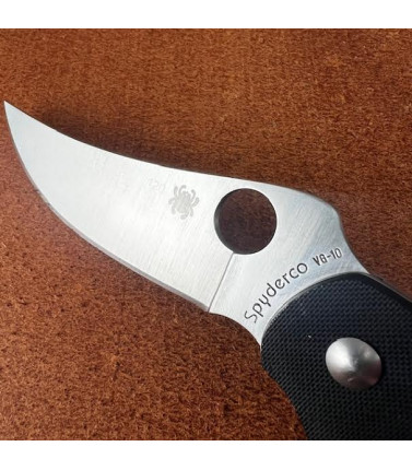 Here is an older Spyderco Persian 2 folding lockback. 3 7/16" upswept plain edge blade of VG-10 stainless. Tang stamp embossed and not etched. Black G-10 handle scales. Black pocket clip. I feel like the knife has been lightly carried and used. May have been lightly sharpened. Still a solid good looking large Persian 2. No box. Ships to you in a padded zippered pouch.
