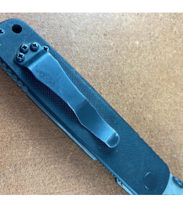 Dual thumb-studs. Atlas lock. Contoured Black G-10 handles. Reversible pocket clip.. Taiwan.