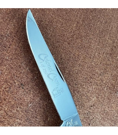 Colonel Coon full size two blade Trapper with beautiful and unique Coon Stripe Corelon handles. CC Round inlay shield.