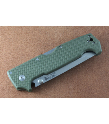 $169.99Cold Steel 62LA SR 1 Tanto CPM-S34VN Stainless Blade. The Cold Steel® SRK® (Survival Rescue Knife) has been a flagship blade in our line-up for over 25 years. The knife of choice for many in the military, it remains the standard issue fixed blade of the Navy SEALs during BUDS training to this day. When we asked custom knife maker Andrew Demko to develop a high-end tactical folding knife for military application, he took his inspiration from the SRK®! The SR1 features Andrews signature minimalist style, without flourishes or embellishments, just pure functional, practical design. The SR1 and the new SR1 Tanto are made for work. Crafted from American CPM-S35VN premium powdered steel, both are heavy duty work horses, designed for the harshest and unforgiving environments. A good blade needs a good handle, so the SR1s handle is made from premium G-10. with a coarse-textured surface for a secure grip even in cold, wet conditions, and expertly contoured to allow for a comfortable and safe grip even while wearing heavy gloves. For added reliability and peace of mind, we equipped the SR1 with our Tri-Ad® locking mechanism - proven over time to weather the worst abuse, with unparalleled shock and impact resistance - making this knife the ideal choice for a survival rescue blade. SPECIFICATIONS: --WEIGHT: 7.2 oz. --BLADE THICKNESS: 4.8mm --BLADE LENGTH: 4" --HANDLE LENGTH: 5 3/8" --HANDLE MATERIAL: OD Green G-10 --BLADE STEEL / MATERIAL: CPM-S35VN Stainless --OVERALL: 9 3/8" ADDITIONAL FEATURES: --Reversable Stainless Pocket Clip for right or left side tip-up carry --Dual Thumbstuds --Tri-Ad Lock system --Country of Origin: Taiwan -