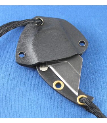 $69.99The Fred Perrin La Griffe Bowie featues a 2" upswept blade of 12C27 stainless steel. One-piece design has integrated finger hole and drilled hole design. Lanyard hole. Molded black Kydex neck sheath with cord lanyard. 5" overall length. France -