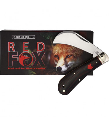 $21.99Rough Rider single blade Red Fox Hawkbill (Pruner). Black and Red Smooth Micarta handles with red liners. Red Fox inlay shield. Pinched and struck nickel silver bolsters. Brass pins and liners. Stainless steel blade.