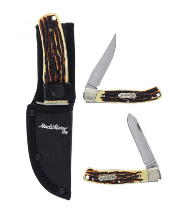 $27.95Schrade - Uncle Henry 2023 Gift Set. Includes an Uncle Henry fixed blade knife, an Uncle Henry folder and sharpening stone. Attractive 2023 Limited Edition Gift Tin.
