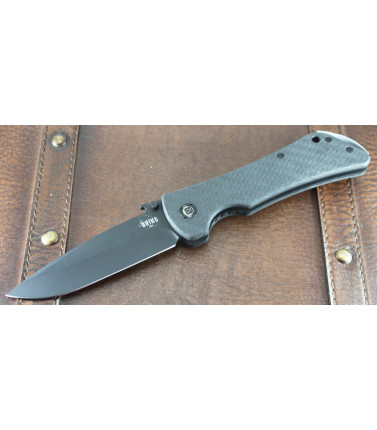 Southern Grind Bad Monkey folding linerlock with Matte Black Cerekote finished Plain Edge blade and Twill-woven Carbon Fiber handle scales. FEATURES AND SPECIFICATIONS: --Blade Steel: Sandvik 14C28N High Carbon Stainless Steel --Hardness: 59-61RC --Blade Style: Drop Point --Blade Grind: Hollow --Blade Finiish: Matte Black Cerekote --Edge Type: Plain Edge --Handle Material: Twill-woven Carbon Fiber --Lanyard Hole: Yes --Pocket Clip: Yes - Stainless Steel - Black - Tip-up carry --Frame/Liner: 6AL4V Titanium - Black --Action: Manual --Opener: Dual Thumbstuds and Emerson WAVE feature --Lock: 6AL4V Titanium Linerlock - Black --Brand: Southern Grind --Model Name: Bad Monkey --Part Number: SGT1104KH --Model Number: SGT1104KH --Use: Tactical - everyday Carry (EDC) --Blade Thickness: 0.130" --Cutting Edge: 4" --Blade Length: 4" --Handle Length: 5 1/4" --Overall Length: 9 1/4" --Handle Thickness: 0.588" --Weight: 5 oz Country of Origin: USA ADDITIONAL FEATURES: --All Black Stainless Steel Hardware --Hollow Ground blade --Bronze Washers --Short Pocket Clip for secure pocket carry with minimal interference --Compound Ground Modified Tanto blade --This Bad Monkey knife is packaged with a Southern Grind koozie, paracord bracelet and leather key chain at no extra charge!.