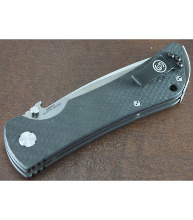 Southern Grind Bad Monkey folding linerlock with Satin Stonewashed finished Partially Serrated Modified Tanto blade and Twill-woven Carbon Fiber handle scales. FEATURES AND SPECIFICATIONS: --Blade Steel: Sandvik 14C28N High Carbon Stainless Steel --Hardness: 59-61RC --Blade Style: Modified Tanto --Blade Grind: Flat --Blade Finiish: Satin Stonewashed --Edge Type: Partially Serrated --Handle Material: Twill-woven Carbon Fiber --Lanyard Hole: Yes --Pocket Clip: Yes - Stainless Steel - Black - Tip-up carry --Frame/Liner: 6AL4V Titanium --Action: Manual --Opener: Dual Thumbstuds and Emerson WAVE feature --Lock: 6AL4V Titanium Linerlock --Brand: Southern Grind --Model Name: Bad Monkey --Part Number: SGT1107K --Model Number: SGT1107K --Use: Tactical - everyday Carry (EDC) --Blade Thickness: 0.130" --Cutting Edge: 4" --Blade Length: 4" --Handle Length: 5 1/4" --Overall Length: 9 1/4" --Handle Thickness: 0.588" --Weight: 5 oz Country of Origin: USA ADDITIONAL FEATURES: --All Stainless Steel Hardware --Bronze Washers --Short Pocket Clip for secure pocket carry with minimal interference --Compound Ground Modified Tanto blade --This Bad Monkey knife is packaged with a Southern Grind koozie, paracord bracelet and leather key chain at no extra charge!.