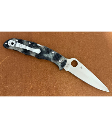 $94.50Spyderco C11ZFPDCMO Delica Spyderco Delica Flat Ground Plain Edge with Desert Camo Zome handles. Features: 3D handle shape with Volcano grip. Nested steel liners. Flat gound blade, 4-way pocket clip. Blade Steel: VG-10 Stainless. Edge Type: Plain Edge. Handle Material: Fiberglass Reinforced Nylon. Blade Length: 2 7/8". Length Closed: 4 1/4". Length Overall: 7 1/8". Seki City. NOTE: As each handle is individually hand crafted with the Zome coloration, each knife will vary slightly in coloration.