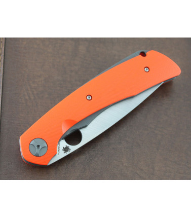 $403.20Designed by Israeli goldsmith and custom knifemaker Nati Amor, the Spyderco Subvert faithfully translates all the key qualities of his handcrafted 'Sabotage' design into a premium-quality production folder. Its dramatically styled blade is crafted from CPM® S30V® particle metallurgy stainless steel and features a broad profile, pronounced belly, and full-flat grind for maximum edge length and extreme cutting performance. The satin-finished blade also has a fully accessible Trademark Round Hole and rides on twin ball-bearing pivot washers that ensure an ultra-smooth one-hand-opening action. The Spyderco Subverts handle is built on a framework of thick, skeletonized titanium liners that give it outstanding structural strength and form the foundation of its stout LinerLock mechanism. They are capped by contoured orange G-10 scales and joined by a matching G-10 backspacer that provides additional strength while allowing an easy-to-clean open-backed construction style. A portion of the matte-finished liners is also exposed to allow access to a lanyard hole and to complement the aesthetics of machined accents on the knifes pivot pin. To allow the Subvert to be easily carried and keep it available for immediate access, its handle includes a polished stainless steel pocket clip configured for right-side, tip-up carry. SELECT SPECS: --Overall Length: 9.24" (235mm) --Blade Length: 4.14" (105mm) --Steel: CPM S30V --Closed Length: 5.10" (130mm) --Edge Length: 4.14" (105mm) --Weight: 6.2oz (176g) --Blade Thickness: 0.157" (4.0mm) --Handle: Titanium/G-10 --Clip Position: Right --Tip Carry Position: Tip-Up --Lock: TypeLinerLock --GrindFull-Flat --Sheath: N/A --Country of Origin: Taiwan -