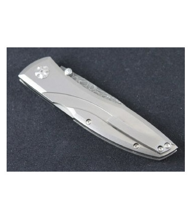 $450.00--PREOWNED-- From a collector: Vintage Willaim Henry Lancet Linerlock with Black Palm Inlays and beautiful Mokume Bolsters. A rare and discontinued William Henry pattern, the Lancet Linerlock is the quintessential small and lightweight gentleman's knife. Solid build with Titanium Frame and expertly fitted Black Palm Inlays front and back. Genuine Mokume Bolsters. Blue anodized titanium linerlock. Single thumb-stud. No pocket Clip. No blade play up and down or side to side. Original factory edge. Does not appear to have ever been used to cut with. Beautiful example of a timeless pattern produced by one of the premier knife makers. SPECIFICATIONS: --Blade Steel: 154 CM --Blade Shape: Spear Point --Blade Finish: Hand Rubbed --Blade Edge: Plain Edge --Frame: Anodized 6Al/4V Titanium --Lock: Titanium Linerlock --Thumbstud: Yes - Single --Lanyard Hole: Yes - with Leather Lanyard --Pocket Clip: No --Leather Storage Pouch: Yes --Blade Length: 2 5/8" --Handle Length: 3 1/2" --Overall Length: 6 1/8" Original Box and all packaging in excellent condition. Country of Origin: USA NOTE: Be advised, this knife is over 15 years old. We acquired it from a collector so please consider it used. --Black Palm is a naturally occuring material and may have small imperfections or checks in the wood. This is not a flaw, but simply a characteristic of the material. -