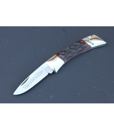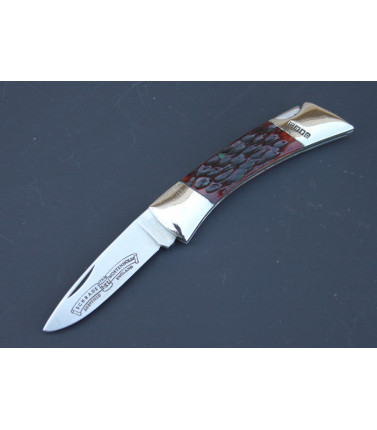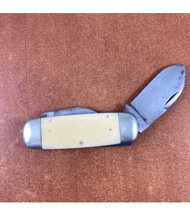 $39.90PRE-OWNED FROM A COLLECTION C.1980 USA Made Parker-Edwards full size two blade Trapper with Red Bone handles. Stainless Clip and Spey Blades. 4 1/8" closed. Knife in excellent condition. Original factory edge. No signs of carry or use. Clip blade is lazy but does close. Nice thing about this is the ease of opening the blades. 4 1/8" closed. USA NOTE: While this knife is in excellent condition, we obtained it from a collection, so please consider it used. -