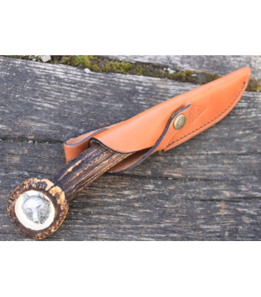 $199.90FROM A COLLECTION: Buck Custom Shop B192-SP33 Wolf Crown Stag Hunting Knife. Features a 4" satin finished Drop Point Stainless Steel Blade. Blade features a Wolf Track laser cut-out and Buck Custom USA Tang Stamp. Genuine Crown Stag handle features a pewter Wolf head inlay. Brass Guard. Approx 10' overall. Includes premium Tan Leather belt sheath. Knife, sheath and box - including paperwork are as they came from the Buck Factory. Original box and paperwork including Certificate of Authenticity. This knife, sheath and box are just as they came out of the Buck Factory. . BE ADVISED: While this knife is near mint, we obtained it from a collection, so please consider it used. -