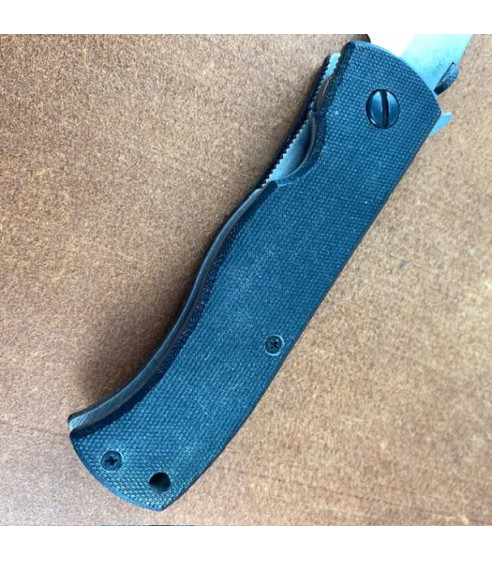 This is an fairly early Emerson CQC-7BW (2013) with 341X serial number. Features a 3 1/4" satin finished partially serrated chisel ground blade of 154CM stainless. Pretty sure this has dual Titanium liners with liner-lock. Thumb-disc opening -