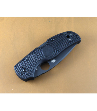 $153.00This Spyderco Native 5 features a 2 7/8" flat ground plain edge blade of black DLC coated CPM S30V stainless. Black FRN handles. Mid-lockback design. Blade is full flat gournd with swedge. Black Stainless spoon pocket clip. Drilled and tapped on all four corners. All black hardware. USA -