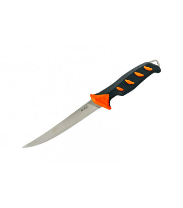 The Buck 144ORS Hookset 6" Freshwater Filet Knife features a flexable 6" flat ground 5Cr15MoV Stainless blade. Orange and Gray Polypropylene with TPA Rubber handles over full tang construction for sure control in wet enviornments.