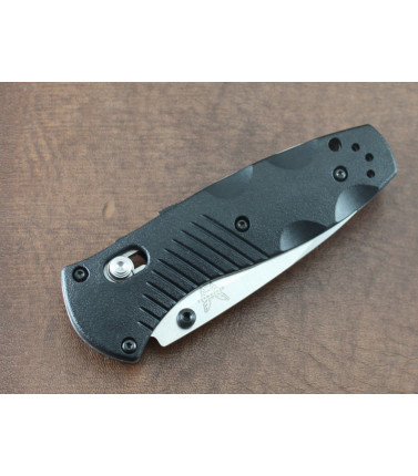 $198.00Benchmade 580 Barrage. This Osbourne designed Benchmade Barrage is the best selling pattern in the Axis Lock family. This Barrage features an assisted opening 3.60 satin finished drop point (looks spear point to me) plain edge blade of 154CM stainless steel. The blade features a double safety for both the open and closed positions. The black Valox handles over stainless liners provide good grip and excellent strength. Axis Lock. Dual thumbstuds. Reversable pocket clip for left or right side tip-up carry. The Barrage® is the first to feature the AXIS® Assist. It offers quick, one-handed opening and can be operated equally with either hand. FEATURES: --Blade Edge: Plain --Blade Finish/Color: Satin --Blade Style/Shape: Drop-point --Clip Type: Standard --Clip Position: Reversible Tip-Up --Handle Material: Valox --Lanyard Hole: Yes --No Sheath SELECT SPECS: --Designer: Osborne --Mechanism: AXIS-Assist --Action: Assisted-opening --Blade Steel: 154CM Stainless --Hardness (58-61 HRC) --Blade Length: 3.60" (9.14cm) --Blade Thickness: 0.121" (3.07mm) --Open Length: 8.35" (21.21cm) --Closed Length: 4.75" (12.07cm) --Handle Thickness: 0.65" (16.51mm) --Weight: 4.31oz. (122.19g) --Brand: Benchmade --Model Name: Barrage --Model Number: 580 --Item Number: BM580 Country of Origin: USA -