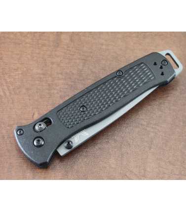 $180.00Benchmade 537GY Bailout Axis Lock. Looking to fly under the radar? The slim and ultralight design of the Bailout® offers users an optimal strength-to-weight ratio. Black Grivory handles, a tanto CPM-3V blade, and aluminum pommel complete a package that cuts weight while maintaining durability. The Bailout®: Two ounces of confidence to your kit. SPECIFICATIONS AND FEATURES: --Blade Steel: CPM-3V --Blade Shape: Tanto --Blade Grind: Flat with false swedge --Blade Edge: Plain Edge --Blade Finish: Gray Cerakote --Handle: Black Grivory --Pocket Clip: Yes - Black Deep Carry - Right or left side tip-up carry --Opener: Dual Black Thumbstuds --Lock: Axis Lock --Lanyard Hole: Yes - Via extended aluminum pommel --Blade Length: 3.38" --Blade Thickness: 0.90" --Cutting Edge: 3 3/8" --Handle Length: 4.71" --Open Length: 8.07" --Handle Thickness: 0.41" --Weight: 2.05 oz Country of Origin: USA