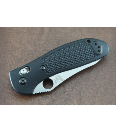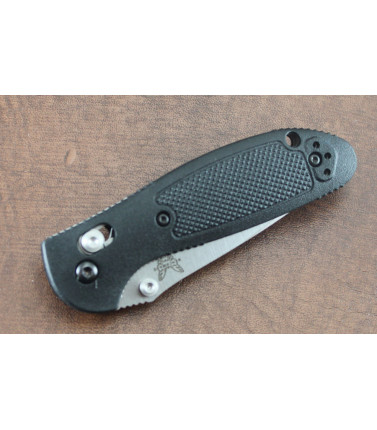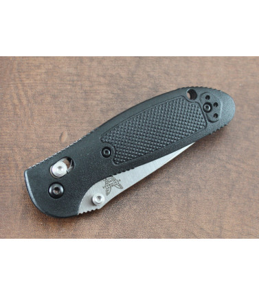 $117.00This classic Mel Pardue designed Benchmade Mini Griptilian features a 2.91" Satin finished partially serrated drop point blade of S30V stainless steel. Black Noryl GTX handles. Axis Lock. Dual thumbstuds. Reversable pocket clip for right or left side tip-up carry. SPECIFICATIONS: --Designer: Pardue --Mechanism: AXIS® --Action: Manual-opening - Dual Thumbstuds --Blade Steel: CPM-S30V Stainless --Hardness: 58-60 RC --Blade Shape: Drop Point --Blade Finish: Satin --Blade Edge: Partially Serrated --Handle: Black Noryl GTX --Pocket Clip: Yes - Right or Left side tip-up carry --Blade Length: 2.91" (7.39cm) --Blade Thickness: 0.100" (2.54mm) --Open Length: 6.78" (17.22cm) --Closed Length: 3.87" (9.83cm) --Handle Thickness: 0.51" (12.95mm) --Weight: 2.81oz. (79.66g) --Brand: Benchmade --Item Name: Mini Griptilian --Model Number: 556S-S30V --Item Number: BM556S-S30V --UPC Code: 610953183875 Country of Origin: USA -