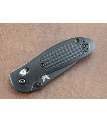 $126.00This classic Mel Pardue designed Benchmade Mini Griptilian features a 2.91" Black BK Coated partially serrated drop point blade of S30V stainless steel. Black Noryl GTX handles. Axis Lock. Dual thumbstuds. Reversable pocket clip for right or left side tip-up carry. SPECIFICATIONS: --Designer: Pardue --Mechanism: AXIS® --Action: Manual-opening - Dual Thumbstuds --Blade Steel: CPM-S30V Stainless --Hardness: 58-60 RC --Blade Shape: Drop Point --Blade Finish: Black BK Coating --Blade Edge: Partially Serrated --Handle: Black Noryl GTX --Pocket Clip: Yes - Right or Left side tip-up carry --Blade Length: 2.91" (7.39cm) --Blade Thickness: 0.100" (2.54mm) --Open Length: 6.78" (17.22cm) --Closed Length: 3.87" (9.83cm) --Handle Thickness: 0.51" (12.95mm) --Weight: 2.81oz. (79.66g) --Brand: Benchmade --Item Name: Mini Griptilian --Model Number: 556SBK-S30V --Item Number: BM556SBK-S30V --UPC Code: 610953183882 Country of Origin: USA -