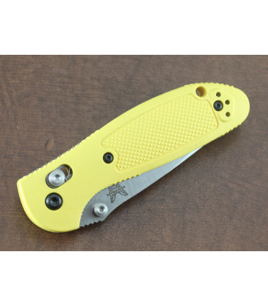 $102.00This classic Mel Pardue designed Benchmade Mini Griptilian features a 2.91" Satin finished plain edge drop point blade of S30V stainless steel. Yellow Noryl GTX handles. Axis Lock. Dual thumbstuds. Reversable pocket clip for right or left side tip-up carry. SPECIFICATIONS: --Designer: Pardue --Mechanism: AXIS® --Action: Manual-opening - Dual Thumbstuds --Blade Steel: CPM-S30V Stainless --Hardness: 58-60 RC --Blade Shape: Drop Point --Blade Finish: Satin --Blade Edge: Plain Edge --Handle: Yellow Noryl GTX --Pocket Clip: Yes - Right or Left side tip-up carry --Blade Length: 2.91" (7.39cm) --Blade Thickness: 0.100" (2.54mm) --Open Length: 6.78" (17.22cm) --Closed Length: 3.87" (9.83cm) --Handle Thickness: 0.51" (12.95mm) --Weight: 2.81oz. (79.66g) --Brand: Benchmade --Item Name: Mini Griptilian --Model Number: 556YEL-S30V --Item Number: BM556YEL-S30V --UPC Code: 610953183963 Country of Origin: USA -
