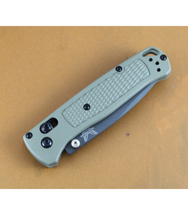 $171.00Benchmade 535GRY-1 Bugout Ranger Green with Chromium Nitride coated plain edge blade. The Benchmade Bugout is a full-size, thin and lightweight folder that packs a lot of utility in a noticably light platform. This Benchmade Bugout features a 3.45" chromium nitride coated drop point plain edge blade of CPM-S30V stainless steel. Ranger Green Grivory handles with lightly bronzed anodized spacers. Black DLC coated Axis Lock. Dual lightly bronze anodized thumb studs. Chromium nitride coated reversable pocket clip for right or left side tip-up carry. The Bugout was designed for the modern outdoor adventurer, incorporating the lightest, best performing materials in an extremely slim yet ergonomic package. FEATURES: --Blade Edge: Plain --Blade Finish/Color: Chromium Nitride --Blade Style/Shape: Drop-point --Clip Type: Mini Deep-Carry --Clip Position: Reversible --Handle Material: Ranger Green Grivory --Lanyard Hole: Yes SELECT SPECS: --Designer: Benchmade --Mechanism: AXIS® --Action: Manual-opening --Blade Steel: CPMS30V Stainless --Hardness: (58-60 HRC) --Blade Length: 3.24" (8.23cm) --Blade Thickness: 0.090" (2.29mm) --Open Length: 7.46" (18.95cm) --Closed Length: 4.22" (10.72cm) --Handle Thickness: 0.42" (10.54mm) --Weight: 1.85oz. (52.45g) Country of Origin: USA -