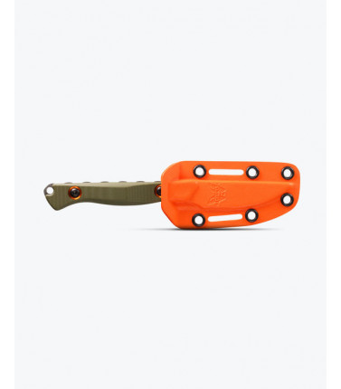 The Flyway® has proven its worth as the ultimate upland game and waterfowl fixed blade. The 15700-01 maxes out on edge retention with CPM-S90V steel to keep you in the field late into the season. Further changing things up, the ergonomic handle now includes OD Green G10 handle scales with orange accent rings for visibility, and the orange Boltaron® sheath is perfect for securing to a chest rig or slipping into a pack.