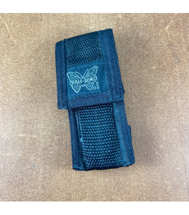 Original Bali-Song Model 68. 3 1/4" blade. Stainless Handles. Flush pins. "T" latch. Original black nylon Bali-Song sheath. Knife is excellent condition but does show minor scuffing. Appears to have been slightly sharpened. Priced accordingly.