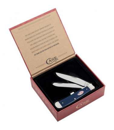 $79.99Case XX full size two blade Trapper with Smooth Navy Blue Synthetic handles. Color Oval Flag inlay. Stainless Clip and Spey blades. Includes "Cigar Box" presentation/gift box.