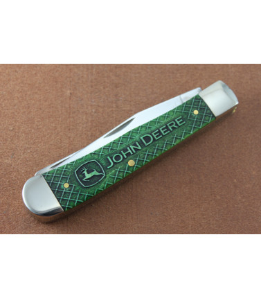 $64.98This Case XX/John Deere full size two blade Canoe. Smooth Green Synthetic handle scales with embellished mid-bolster. Embellished Spear Blade. Stainless Spear and Pen blades. 3 5/8" closed. USA -