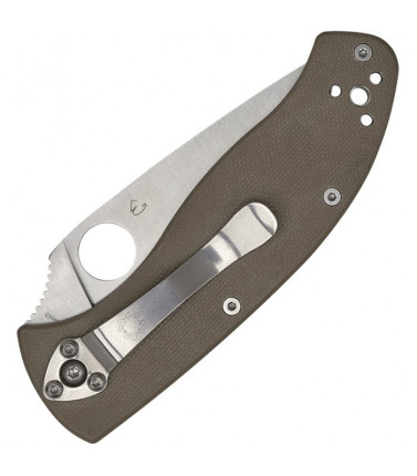 $142.50Spyderco C122GBNM4PS Tenacious with Brown G-10 Handle scales and M4 High Carbon partially serrated blade. Spyderco is advancing it's budget line of knives by adding M4 High Carbon blades in the Tenacious. Textured Brown G-10 handles over dual skeletonized stainless liners and a sturdy linerlock makes this a solid and sound choice for everyday carry. SPECIFICATIONS: --Blade Steel: M4 High Carbon --Blade Edge: Partially Serrated --Blade Finish: Satin --Blade Grind: Flat --Handle: Textured Brown G-10 over dual skeletonized stainless liners. --Lock: Walker Linerlock --Pocket Clip: Stainless - Handles drilled and tapped for right or left side tip-up or tip-down carry. --Blade Length: 3 3/8" --Closed Length: 4 7/8" PRC