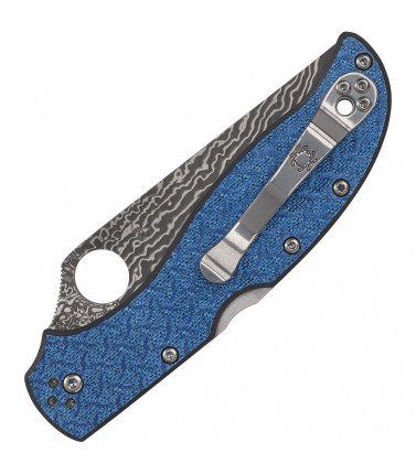 $287.00Spyderco C258GFBLP Stretch 2 XL. Blue Nishijin glass fiber handle scales. D.P.S. 15 Damascus Plain Edge Blade.