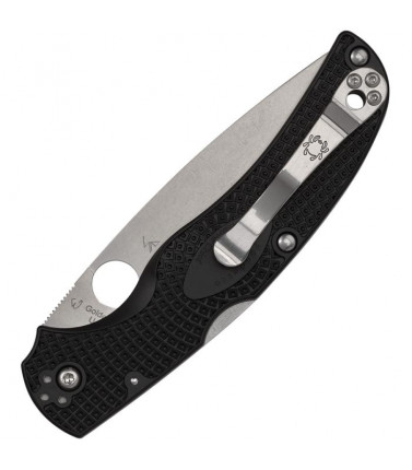 $40.60Spyderco C148SBK Ambitious The Spyderco Ambitious C148SBK features a 2 1/4" flat ground fully serratd leaf blade of 8Cr13MoV stainless steel. Black FRN handles. Dual liners. Stainless pocket clip. Drilled and tapped on all four corners for tip-up, tip-down, left or right side carry. Linerlock. Thumb jimping on blade. 3 1/2" closed.