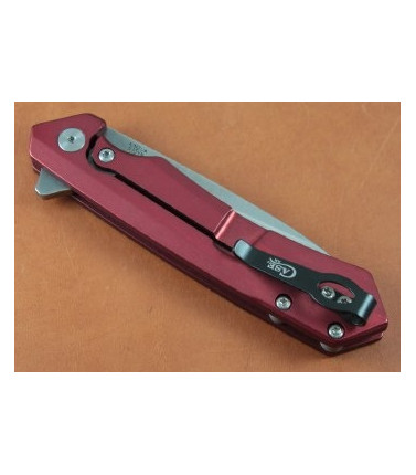 This version features a plain edge Spear Point blade of Premium S35VN Stainless Steel that rides easily on a steel ball-bearing pivot. The Handle is sleek Red Anodized Aluminum. One handed Flip-open design with a finger flipper. Super strong framelock with steel insert for security when using the Kinzua for heavy chores. Reversable Deep Carry pocket clip.