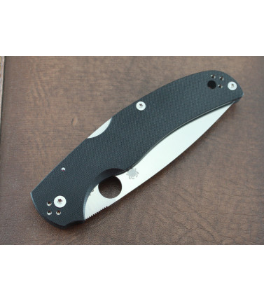 $56.25Spyderco C246GPS Insistent Partially Serrated. The Spyderco Insistent is a robust small, budget friendly folding linerlock that feels great in the hand due to the G-10 Scales and excellent cutting due to the flat ground blade. Excellent knife for the money! SPECIFICATIONS: --Blade Steel: 8Cr13MoV Stainless --Blade Shape: Leaf --Blade Grind: Flat --Blade Finish: Satin --Blade Edge: Partially Serrated --Frame: Skeletonized Stainless Steel --Handle: Textured Black G-10 --Pocket Clip: Yes - Wire - Reversable left or right side tip-up carry. --Opener: Spyderco Hole --Lock: Linerlock --Blade Length: 3 1/2" --Blade Thickness: 0.118" --Handle Length: 3 3/4" --Handle Thickness: 0.475" --Overall Length: 6 1/8" --Weight: 3.7 oz --Brand: Spyderco --Model Name: Insistent --Model Number: C246GPS --Item Number: SC246GPS --Country of Origin: PRC -