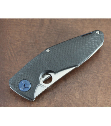 $577.50The Spyderco Drunken is the product of the first ever collaboration between Dimitry Sinkevich and Spyderco. The Drunken combines a stylish, yet ergonomic, handle which features Sinkevich's "drunken" texture on both the titanium lock side and cabon fiber show side, with a flat ground blade of high performance CPM S90V steel. The light weight construction of the Drunken make it an ideal choice for everyday carry. The sheepsfoot blade features a full flat grind for optimum cutting performance and the right side, tip up only pocket clip allows for convenient carry. Specs: Weight: 3.8 ounces Overall Length: 8.00" Blade Length: 3.45" Blade Steel: CPM S90V Blade Thickness: 0.138" Blade Shape: Sheepsfoot Blade Grind: Full Flat Blade Finish: Tumbled Handle Material: Titanium Lock Side, Carbon Fiber Show Side Lock Type: Framelock Opening Mechanism: Round Hole Country of Origin: Taiwan