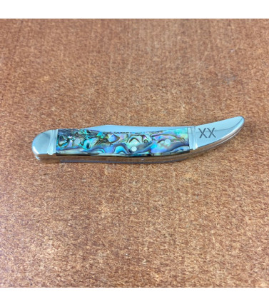 $104.99Case Select 25th Anniversary single blade Small Texas Toothpick Magician's knife with Mother of Pearl handle scale on one side and Abalone handle scale on other side. 810096 SS. Stainless Clip blade. Clip blade embellished " Case XX Select. Case Select tang stamp. Struck nickel silver bolsters with "XX" strike. 3" closed. Hardshell gift box. Limited production of 400 pieces worldwide.