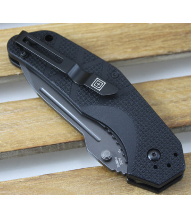 $49.98Designed by Mike Vellekamp, the 5.11 Tactical Scout Folder features a 3 3/4" black coated AUS8 stainless steel plain edge blade. Black G-10 handles with nested steel liners. Linerlock design. Removable black pocket clip. Handle is drilled and tapped on all four corners for left or right side tip-up or tip-down carry. Imported. -