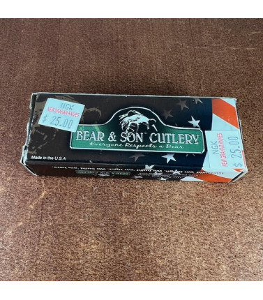 $64.97Bear and Son Rancher. This modern take on a sturdy field pocket knife comes in to the 21st century sporting a rapid finger flipper opening and a robust liner-lock. It features a 3 7/16" flat ground polished plain edge blade of D2 tool steel. Polished stainless oversize bolsters. Smooth Cocobolo scales over steel liners. Deep carry pocket clip oriented for right side tip-up carry.