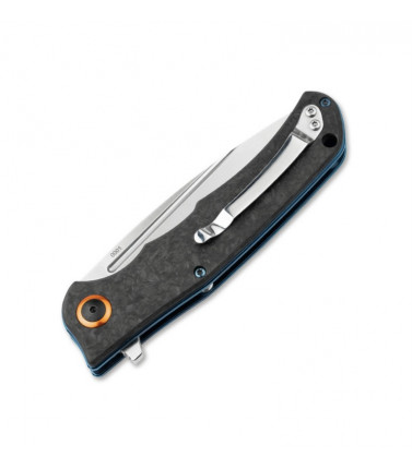$140.95Bleak prospects for all the unruly cutting tasks of everyday life: The fully-grown Boker Plus Nubilum spreads stylish elegance in the EDC world and is awaiting its first use. Equipped with an imposing drop-point blade made of D2, the pocket-knife cuts confidently through cardboard, rope or smaller branches. The flipper and linerlock make the Nubilum easy to use and underline the usual Boker Plus performance. The handle made of wild carbon fiber is ergonomically shaped and lies perfectly in the hand even under the most adverse conditions. The expressive handle scales are decoratively set off by the blue anodized liners including screws as well as the orange ring on the blade axle screw. The deep-carry clip allows tip-up carry (r) and the lanyard hole provides a further attachment option.