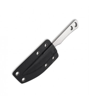 $41.97Purist design and surgical precision as an expression of "haute coutellerie". The French knifemaker Charles de Buyer is known for his designs that are reduced to the essentials and at the same time promise a high utility value. The fixed knife is designed as an all-steel construction and features exciting details. Jimpings on the back of the edge-retaining D2 blade improve handling, while the nail nick and the pronounced ricasso add decorative accents. The flat handle of the Gekai gives a comfortable feel in the hand and has two large recesses at the end of the handle that save weight and can be used as a lanyard hole. Supplied with a custom-fit Kydex sheath and a belt adapter.
