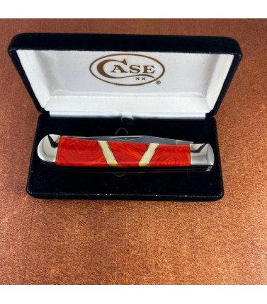 Case XX two blade Tiny Trapper. Exotic Spiny Oyster with Gold Lip Mother of Pearl handles EX468 SS. Stainless blades. 2 3/8" closed.