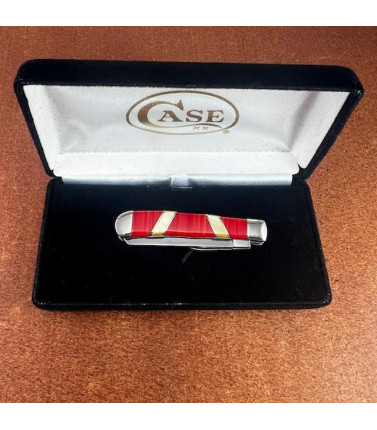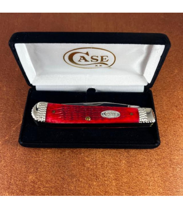 Case XX two blade full size Trapper with jigged Red Bone handles 6254 SS. Stainless Clip and Spey blades. All four nickel-silver bolster have deep engraving.