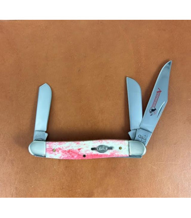 2007 Case XX three blade Serpentine Stockman with Red Appalossa Smooth Bone handles. 6347 SS. Stainless blades. Embellished main blade. 3 7/8" closed. Knife is in excellent condition. No signs of use or carry. Original factory edge. Original box and paperwork in great condition.
