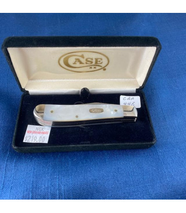 Case XX two blade Mini Trapper with Genuine Mother of Pearl Handles. Stainless Clip and Spey blades. 3 1/2" closed. Made in 2000. Original