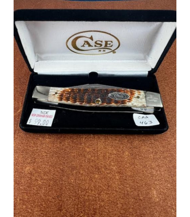 Case XX Collectors Club Life Member two blade Moose with Jigged Honey bone handles. Case Collectors Club oval shield. Stainless Clip and Spey blades.