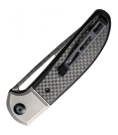 $89.25CIVIVI Elementum Flipper. Damascus Plain edge drop point blade. Twill Carbon Fiber handle scales. Skeletonized steel liner. Linerlock. Lanyard Hole. SPECIFICATIONS: --Overall Length: 6.99"(177.6mm) --Blade Length: 2.96"(75.2mm) --Blade Thickness: 0.12"(3mm) --Blade Material: Damascus --Blade Hardness: HRC59-61 --Blade Grind: Hollow --Handle Length: 4.03"(102.4mm) --Handle Overall Thickness: 0.43"(11mm) --Handle Material: Stainless steel with Carbon fiber overlays. --Liner Material: Stainless Steel --Liner Color: Gray --Clip Material: Stainless Steel --Screws Material: Stainless Steel --Pivot Cap: Stainless Steel --Washers Material: Caged Ceramic Ball Bearing --Weight: 83.3g / 2.94oz --Lock Type: Liner Lock PRC