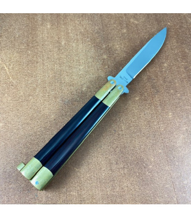 Original Bali-Song Model 68. 3 1/4" blade. Stainless Handles. Flush pins. "T" latch. Original black nylon Bali-Song sheath. Knife is excellent condition but does show minor scuffing. Appears to have been slightly sharpened. Priced accordingly.