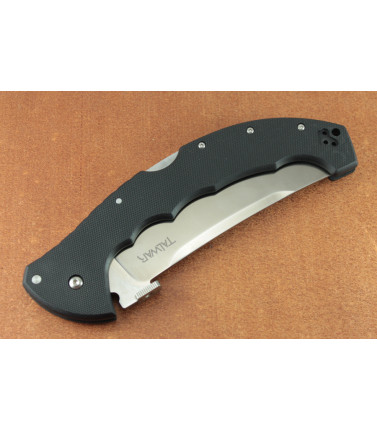 $199.97The Talwar is a BIG folding lockback - but with it's extra wide blade, thin V shaped cross section, upswept blade tip and premium S35VN plain edge blade it is a contender for for best folding knife. SPECIFICATIONS: --Weight: 8.6 oz --Blade Thickness: 3.8mm --Handle Length/Material: 7 3/8in Long G-10Handle --Blade Steel: S35VN Steel --Blade Length: 5 1/2in --Blade Edge: Plain Edge --Lock: Tri-Ad --Overall Length: 12 7/8in Taiwan -