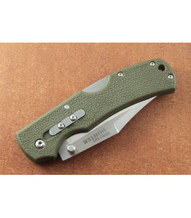 $29.97If you're looking for a budget friendly yet high-performing folding hunter, look no further than the Double Safe Hunter. It's modeled after Cold Steel's extremely popular old-school Voyager®. Its wide, clip-point blade is 3.5" in length and is made of 8Cr13MoV steel, tempered to 57-58 Rockwell hardness. No matter what job, you can be confident you have the right knife on hand, with a blade small enough for intricate cutting tasks, yet big enough to skin anything from a mouse to a moose. A dream to use for any length of time it has a Olive Drab Green glass-filled nylon (GFN) handle that is thin and ergonomically pleasing and features a steel pocket clip. As always, Cold Steel® had your fingers in mind when designing Double Safe. Its state-of-the-art rocker lock features a secondary safety mechanism, that when engaged is enormously resistant to shock and impact. SPECS: --Blade Length: 3 1/2" --Blade Steel: 8Cr13Mov Stainless --Blade Thickness: 3mm --Weight: 4 oz --Closed Length: 4 7/8" PRC