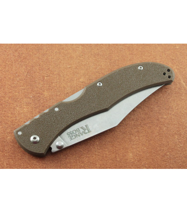 $39.97Cold Steel 20KR7 Range Boss with Flat Dark Earth handle. Whether you are riding the range in a taxi in Manhattan or riding a horse in Montana, we're sure you're going to appreciate the Range Boss. Designed to ride all day in your pocket or waistband, it's light and easy to carry. It doesn't take up much room and can be carried virtually unnoticed until you snap it open. The Range Boss's clip point blade is flat ground to a thin edge that is so sharp it will astonish you. It is stone washed to resist rust, and its versatility makes it a darn good skinning knife, not to mention food preparation too. The glass reinforced nylon handle is textured with a stippled pattern for a good grip, and it features or renowned Tri-Ad® lock for superlative strength. SPECIFICATIONS: --Blade Length: 4" --Overall Length: 9 1/4" --Steel: 4034SS Stainless --Weight: 3.4 oz --Blade Thickness: 3.5mm --Closed Length: 5 1/4" --Brand: Cold Steel --Model Name: Range Boss --Model Number: 20KR9 --Item Number: CS20KR9 Country of Origin: Taiwan -